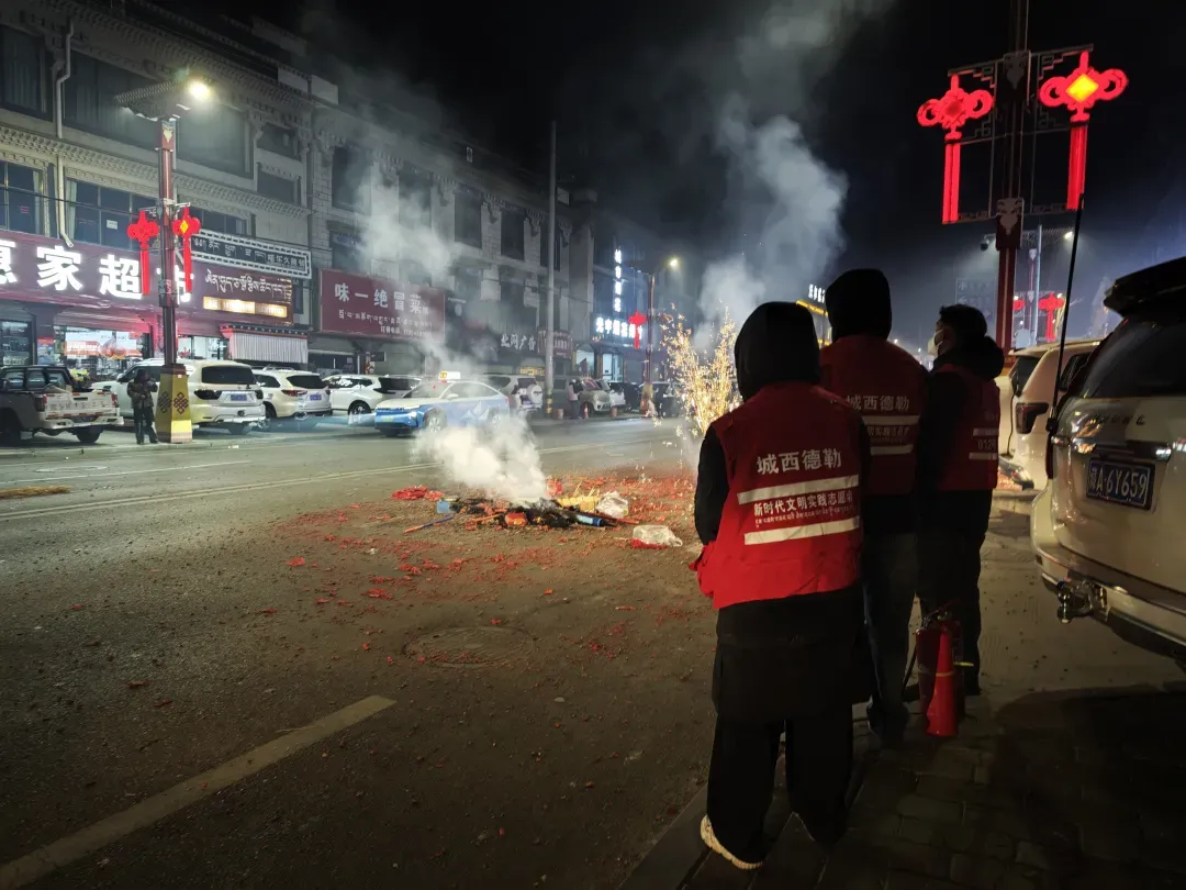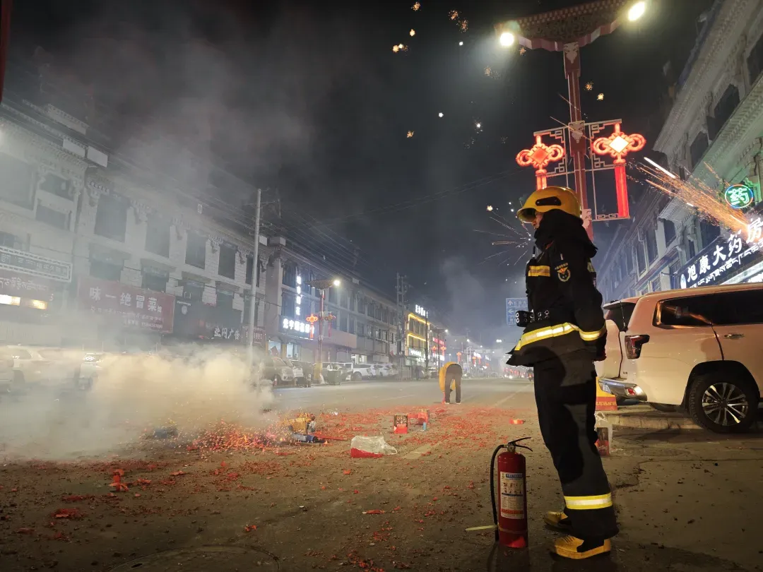 从居民区里逐户排查安全隐患,到街头巷尾耐心宣传安全知识;从细致普及烟花燃放的注意事项,到重点时段定点坚守防控,每一个环节都凝聚着指战员们的细致与严谨。“每逢节日,守护大家的安宁就是我们最大的责任,我们多走一步、多查一处,群众就能多一份安心。”桑珠孜区消防救援大队防火参谋尼罗扎西的话语,道出了所有消防员的心声。寒夜里,路灯将他们的身影拉得很长,那抹亮眼的“消防蓝”,成为守护万家灯火最坚实的屏障。