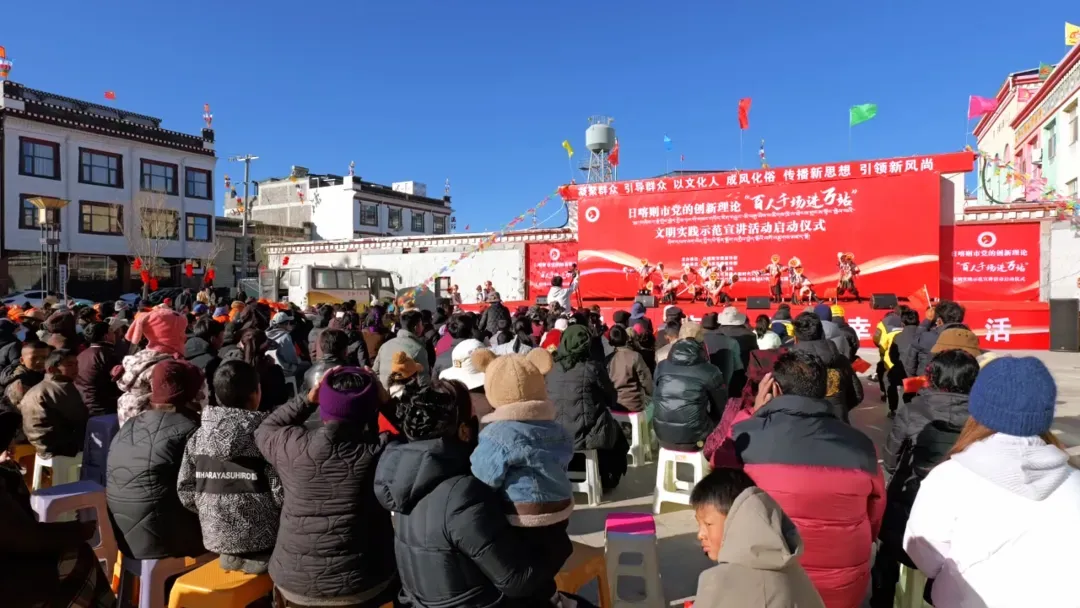 1月26日上午,桑珠孜区斯玛占堆新时代文明实践站彩旗飘扬、暖意融融,日喀则市党的创新理论“百人千场进万站”文明实践示范宣讲活动启动仪式在这里隆重举行!庄严的升国旗仪式拉开活动序幕,各族干部群众齐聚一堂,共同迎接这场理论与欢乐交织的文化盛宴。