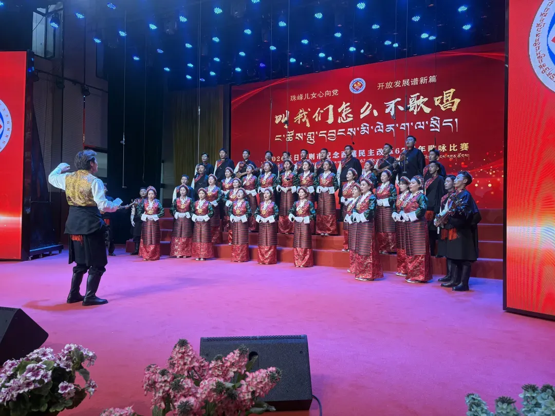 比赛现场,来自南木林、拉孜、昂仁、萨迦、谢通门、仁布六县的参赛队员精神饱满、意气风发。各参赛队伍轮番登台、放声高歌,以嘹亮歌声抒发珠峰儿女的赤子情怀,用昂扬旋律展现新时代高原各族群众团结奋进、昂扬向上的精神风貌,为现场观众献上了一场精彩纷呈的视听盛宴。
